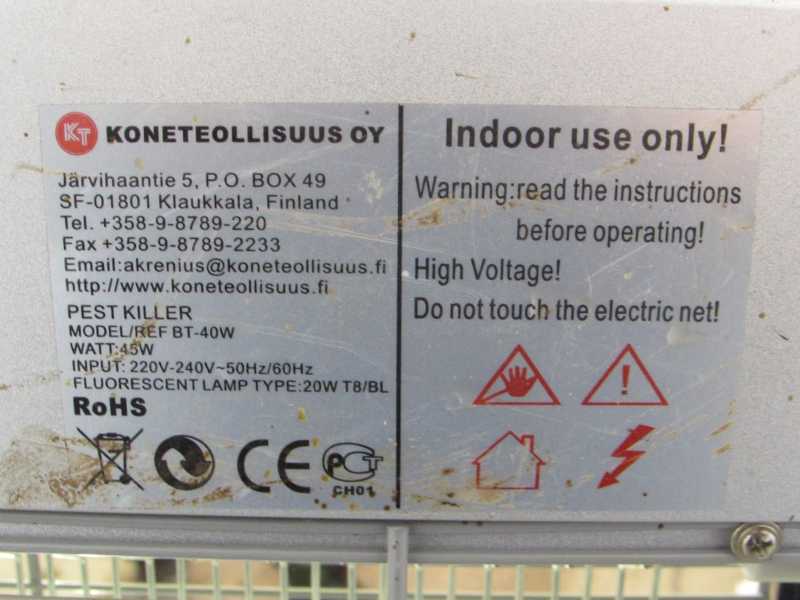 Площадь воздействия 300 м2. Количество ламп 2х20 Вт. Мощность 0,05 кВт.
