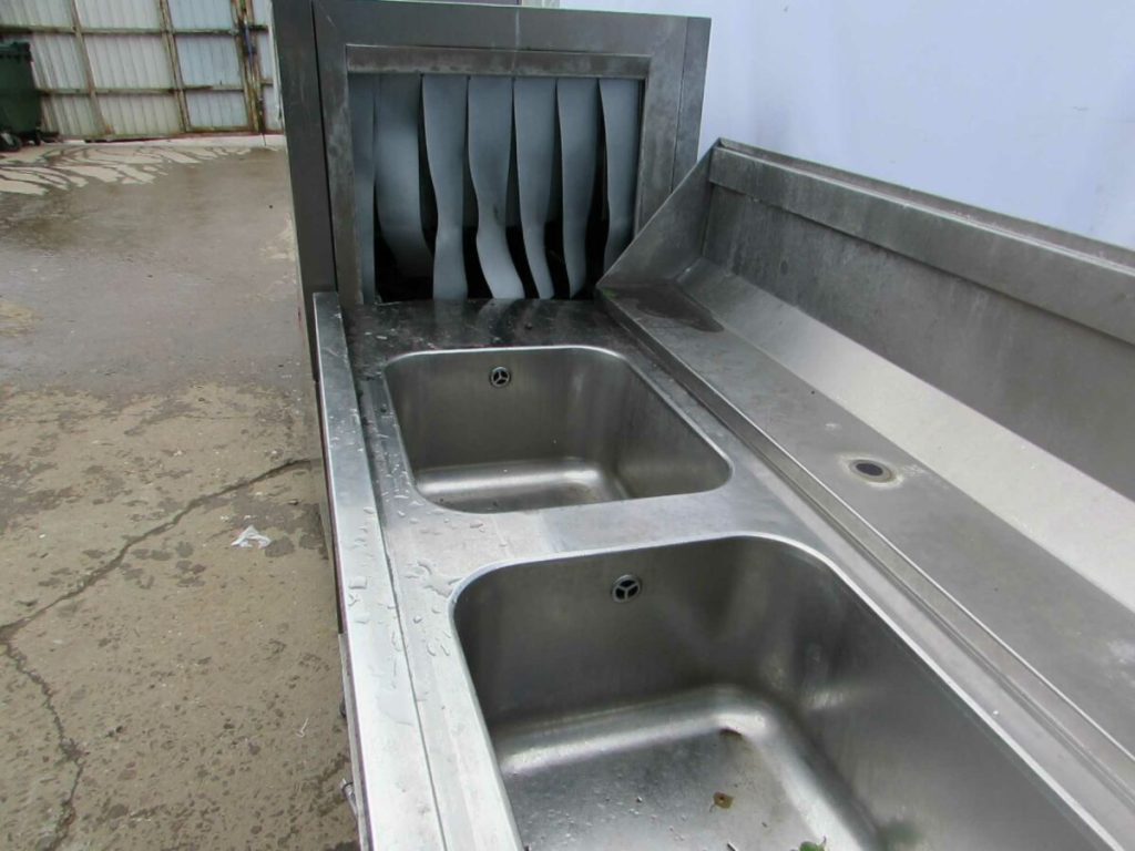 Туннельная посудомоечная машина AC2 от компании COMENDA с производительностью до 148 кассет в час, которая используется для мытья грязной посуды на предприятиях общественного питания.