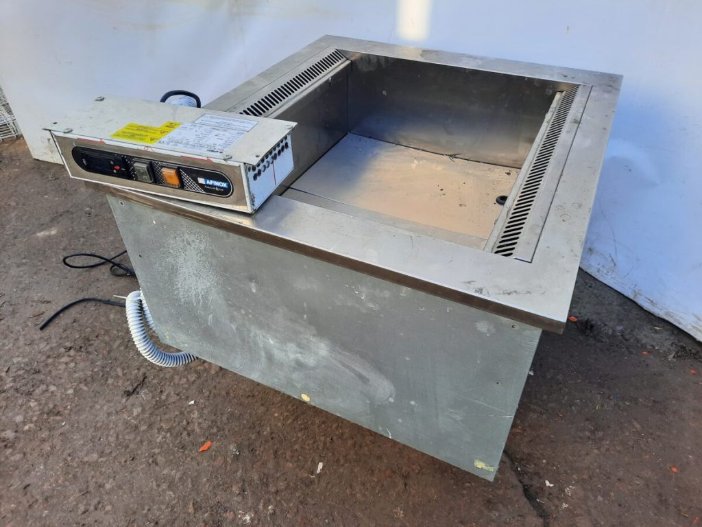 Охлаждающие ванны/столы с горизонтальной подачей воздуха на продукт с регулируемой глубиной, которая позволяет временно выставлять продукты, помещенные в ванны (max.высота 150мм), или с выкладыванием изделий на дно или на стол (с разносами).