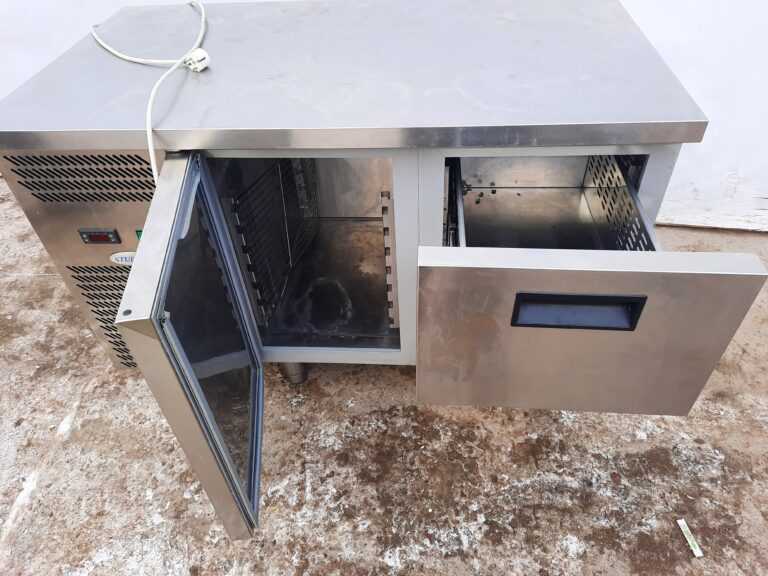 Стол холодильный оборудован электронным управлением, контролем температуры и автоматической системой размораживания с таймером. Оборудование оснащено изоляцией полиуретана высокой плотности, вентилируемым охлаждением, встроенным компрессором и автоматическим испарением конденсата.