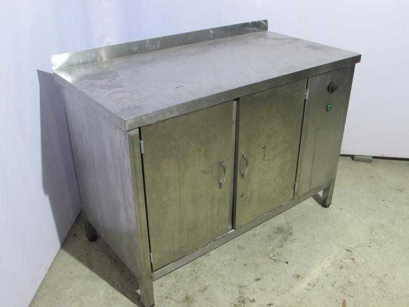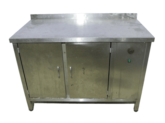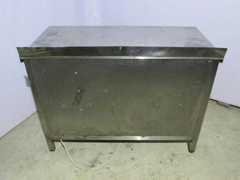 Тепловой стол КАМИК СТ/К-12060 используется на предприятиях общественного питания и торговли для подогрева, демонстрации и кратковременного хранения продуктов и готовых блюд в горячем состоянии. В правой части конструкции расположен термостат, позволяющий регулировать температуру. Модель оснащена раздвижными дверями-купе, расположенными со стороны оператора. Корпус и столешница выполнены из нержавеющей стали AISI 304, дно, полка и задняя стенка – из стали AISI 430.