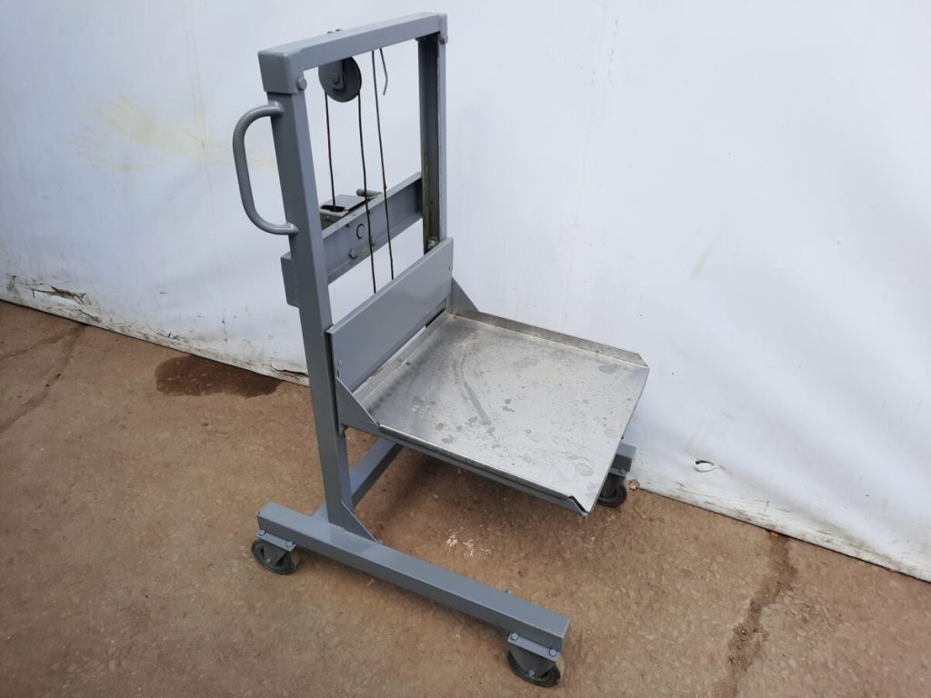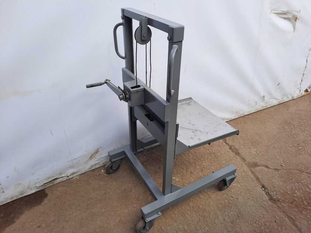 Тележка ручная с механическим (лебёдочным) приводом, широкой базой. Предназначена для подъёма и перемещения баков, котлов, кастрюль большого объёма, других грузов массой не более 150 кг. Подъёмная платформа со съёмным вкладышем из пищевой нержавеющей стали.