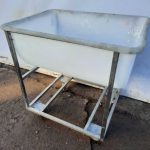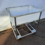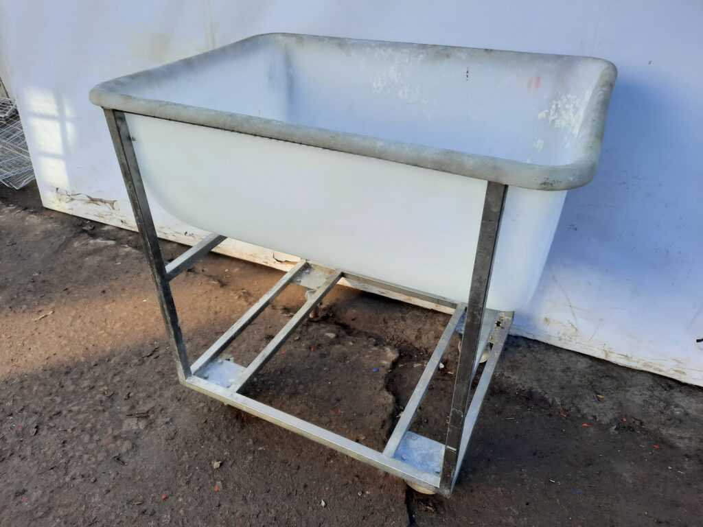 Ванна тележка из полипропилена Б/У. Основа исполнена из нержавеющей стали. Телега перемещается на четырех колесах. Надежная и прочная конструкция. Отличное состояние. Прослужит долгое время новому владельцу.