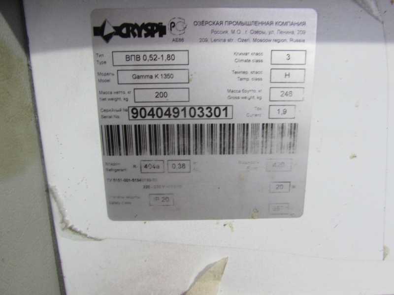 Основные характеристики витрины кондитерской Cryspi ВПВ 0,52-1,8