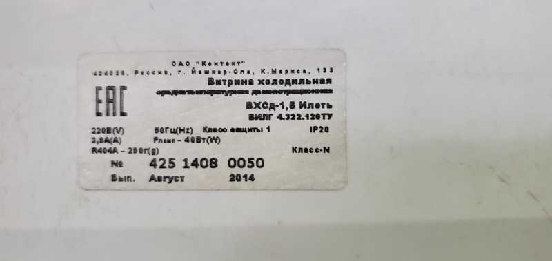- Наименование Холодильная витрина Илеть ВХСд-1,5