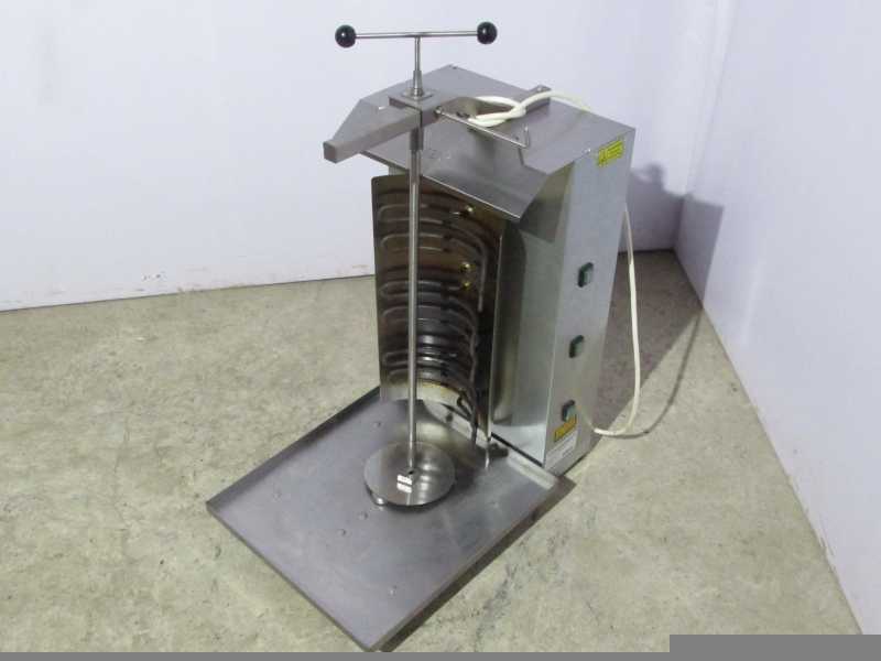 - Принцип действия заключается в том, что мясная нарезка, сформированная в цилиндр, насаживается на специальный нож, который вращается вокруг своей оси около 3 ТЭНов – прожаренный слой мяса срезается остро заточенным ножом и сразу же используется для приготовления блюда