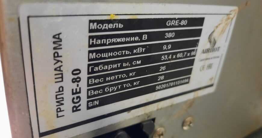 Основные характеристики: Аппарат для шаурмы Airhot GRE 80