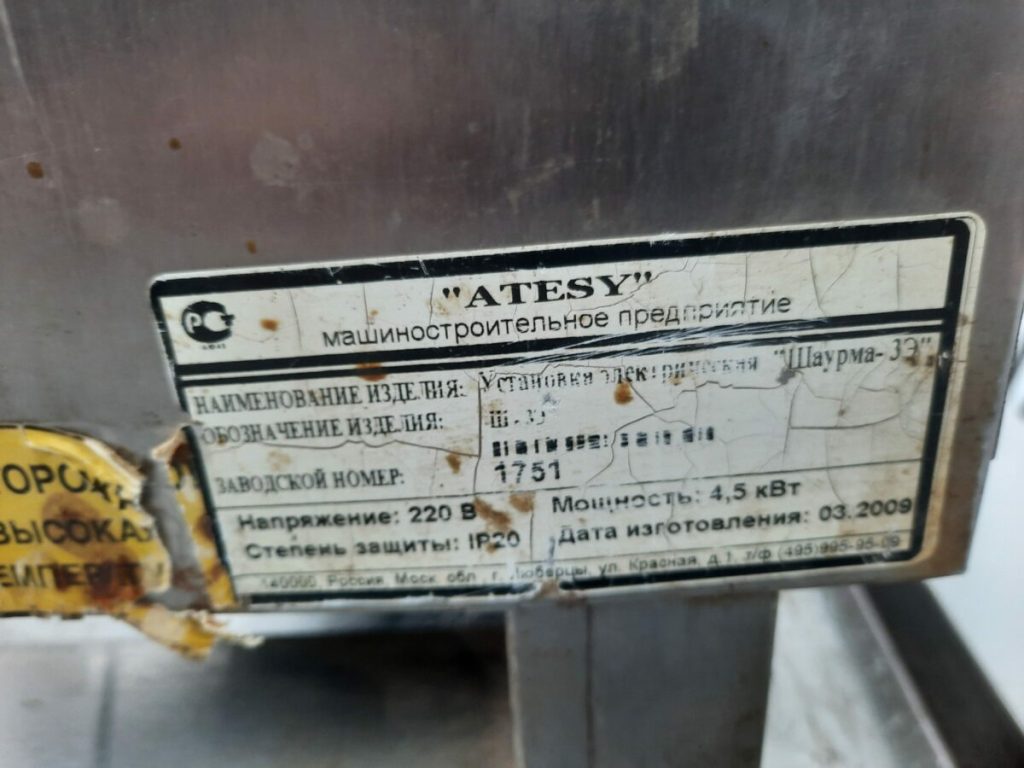 Основные характеристики: Аппарат для шаурмы Atesy шаурма-3э