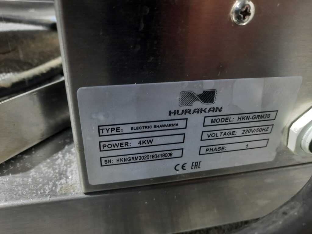 Основные характеристики: Аппарат для шаурмы Huracan hkn-grm20