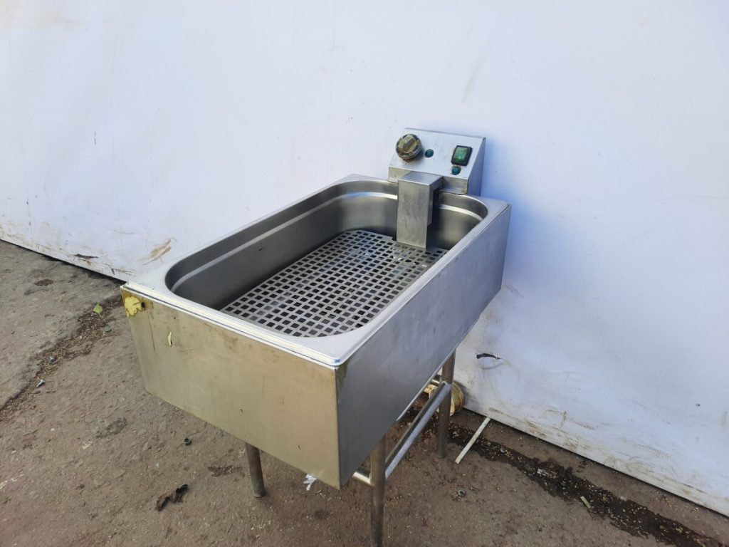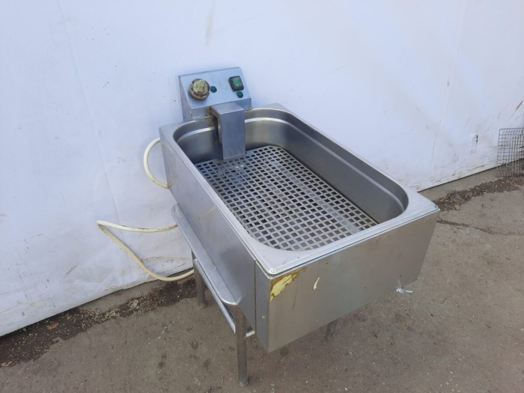 Аппарат ATESY Чебуречница Евро используется на предприятиях общественного питания и торговли для приготовления чебуреков, пирожков и беляшей в разогретом масле (фритюре). Модель оснащена терморегулятором и 2 индикаторными лампами. Изделие полностью выполнено из пищевой нержавеющей стали.