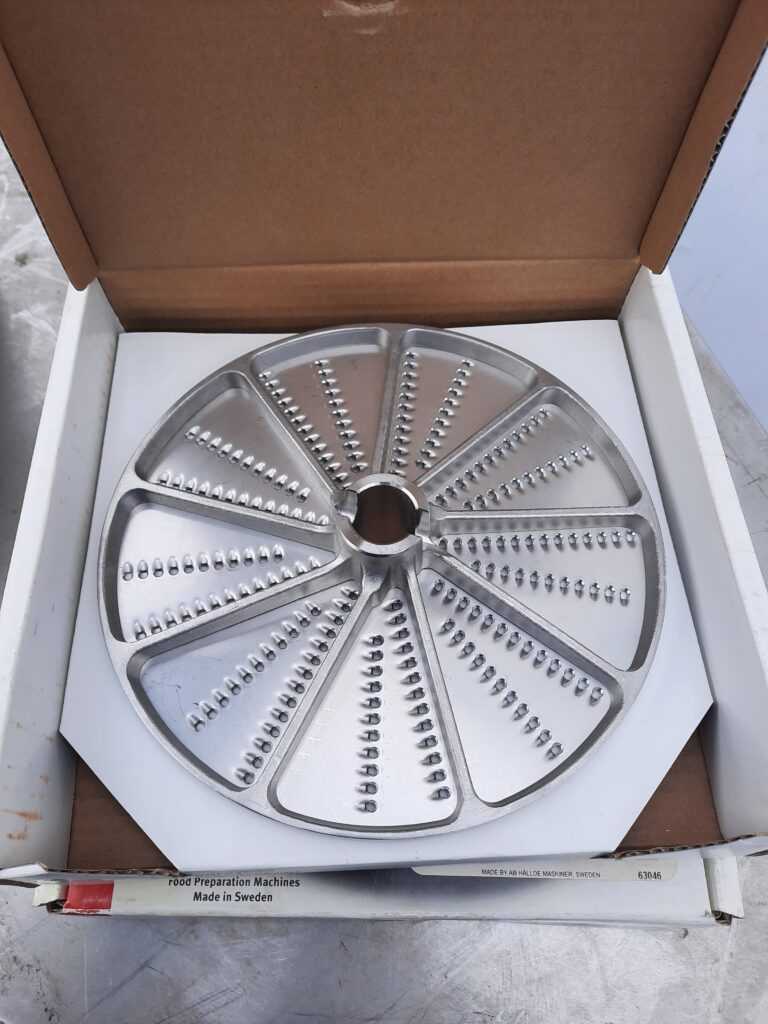 Диск ломтик (6 мм) – обеспечивают качественную нарезку сырья любой плотности. В совокупности со специальными решетками могут быть использованы для получения кубиков и изготовления картофеля фри.Диск терка Hallde 62633 натирает морковь и капусту для сырых салатов. Натирает орехи, миндаль и черствый хлеб.