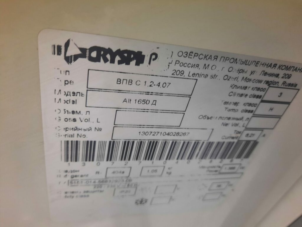 - Охлаждаемая площадь 4.07 м²