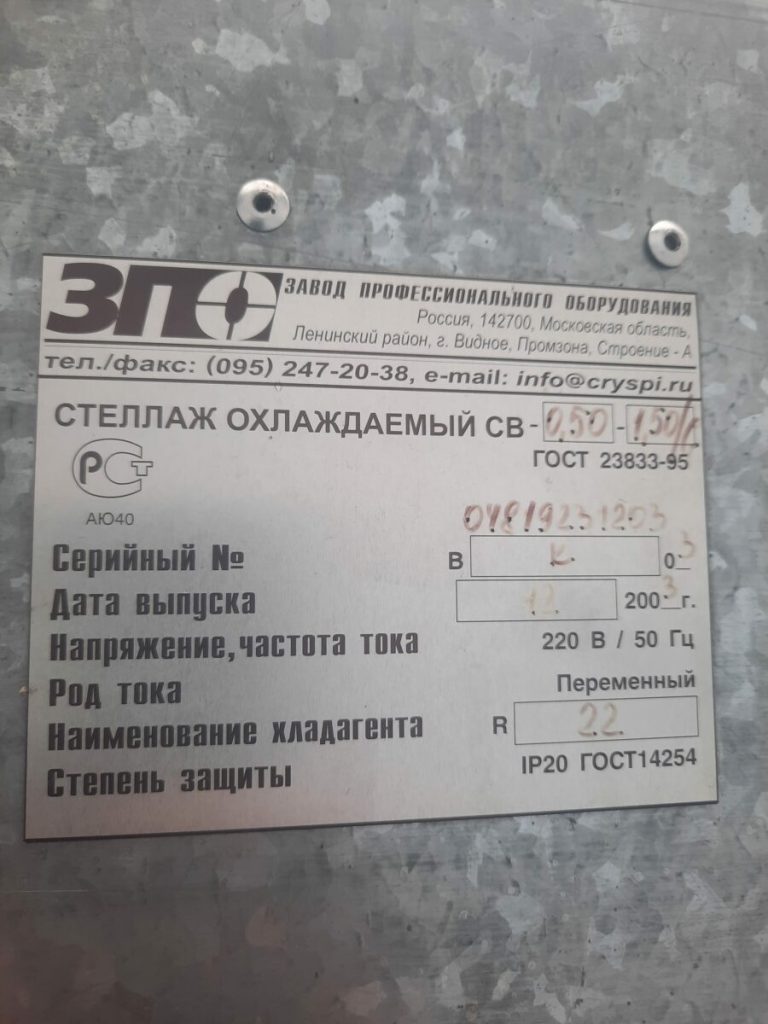 Основные характеристики: Горка Cryspi СВ-0.50-1.50 холодильная