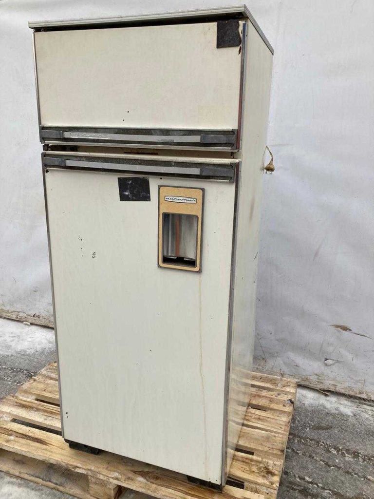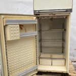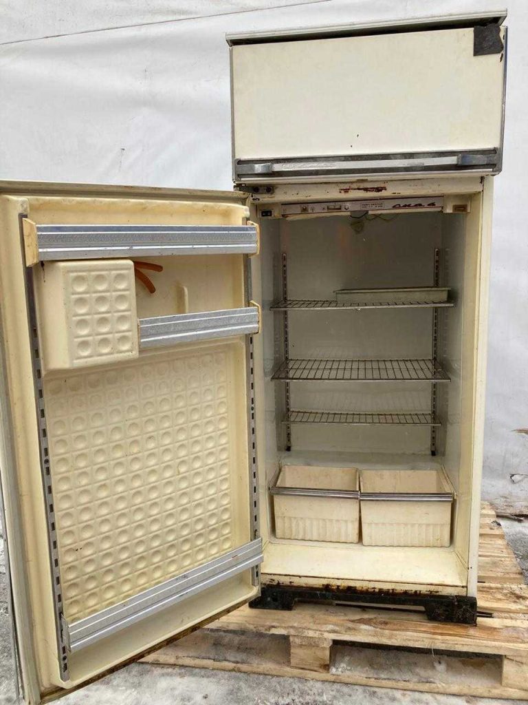 Легендарный холодильник “Ока-6”. В дверце встроены две емкости для охлаждения жидкостей – можно пить не открывая. Нажимаешь стаканом на пластину снаружи дверцы и насос качает сок или воду прямо как в старых автоматах с газировкой!