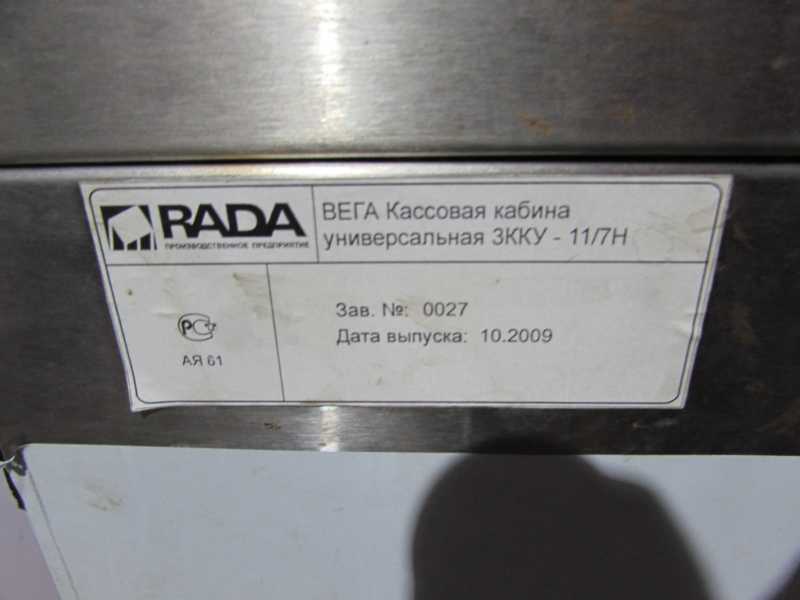 Основные характеристики кассовой кабины Rada Вега ЗККУ-11/7Н