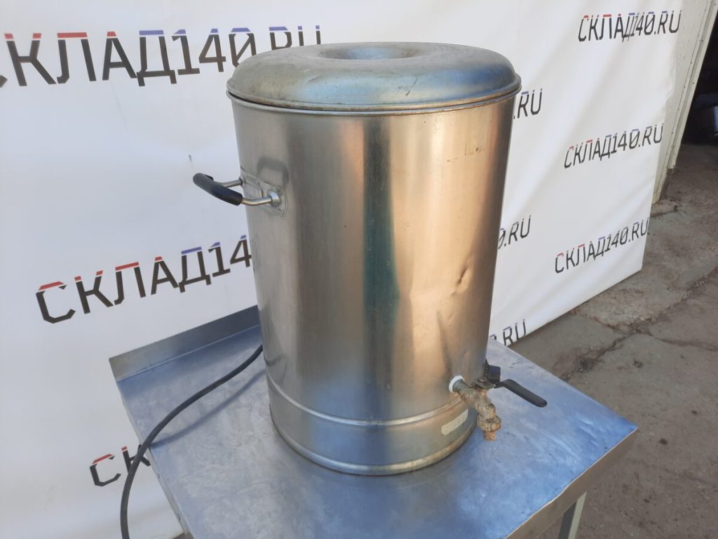 Кипятильник электрический заливной GASTRORAG DK-WB-40 настольный, автономный (наливной), емкость резервуара 40 л, открытый ТЭН, терморегулятор, мерное стекло, сливной кран, материал корпуса – нерж.сталь.