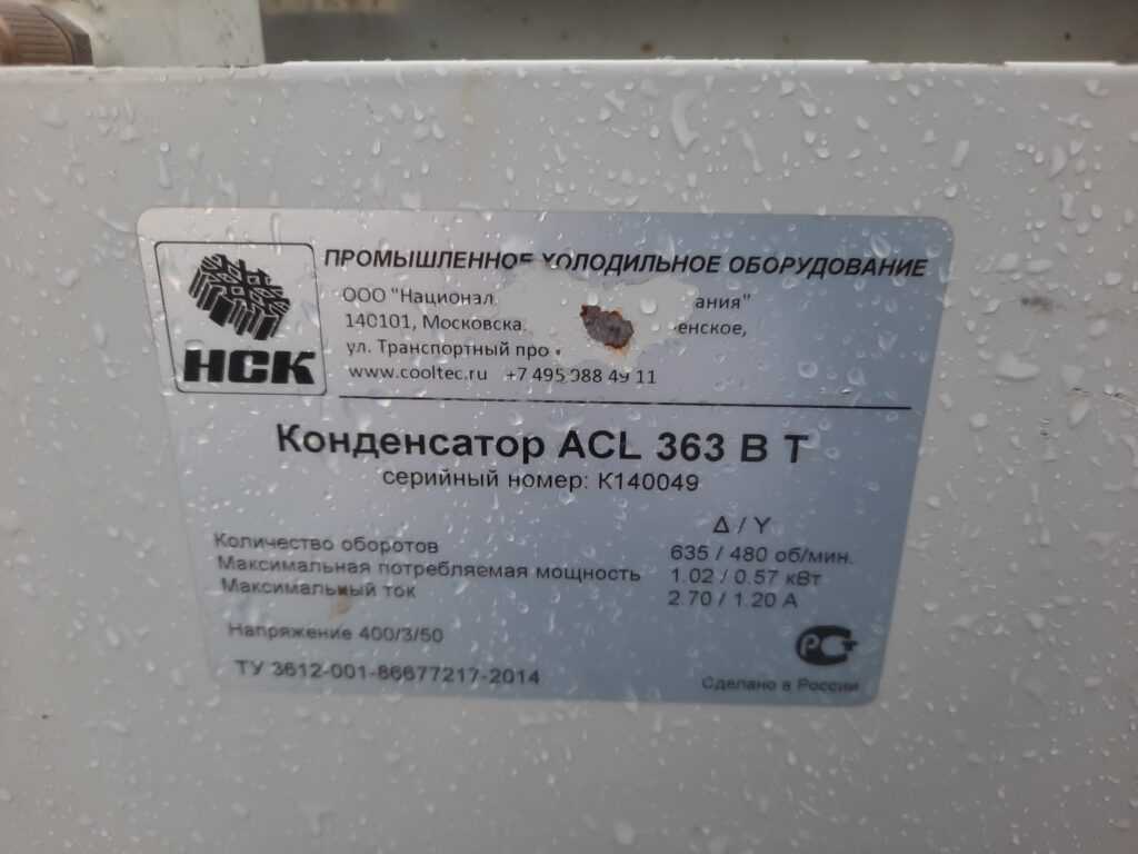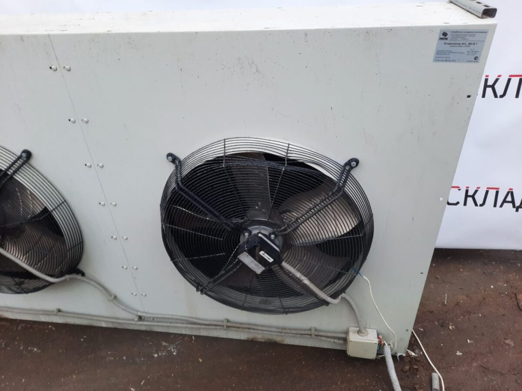 Конденсатор HCK ACL 363 ВT – воздушный конденсатор с тремя вентиляторами диаметром 63 см. Мощность – 79,1 кВт. Область использования – промышленное кондиционирования воздуха, организация системы выносного холода в магазинах, на складских комплексах. Преимущество модели – высокий уровень КПД за счет использования внешнего роторного двигателя, алюминиевого оребрения и плотного прилегания медных труб.