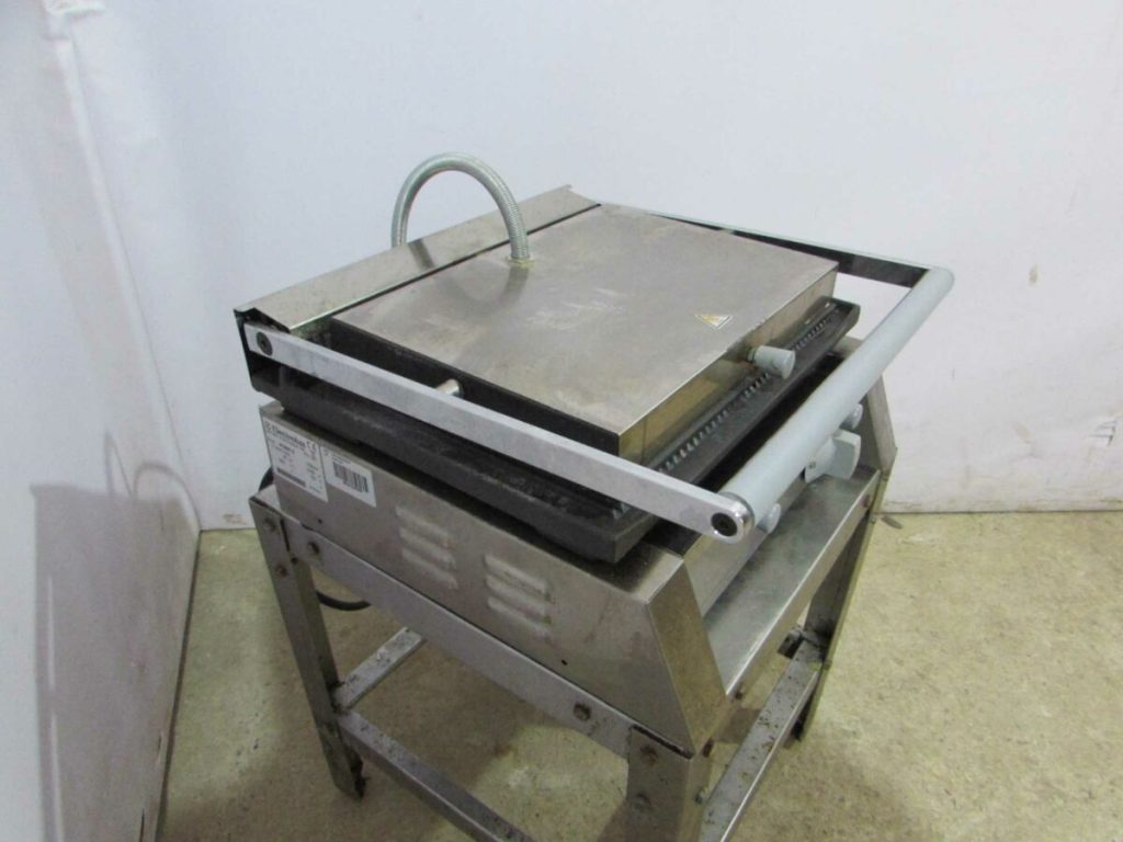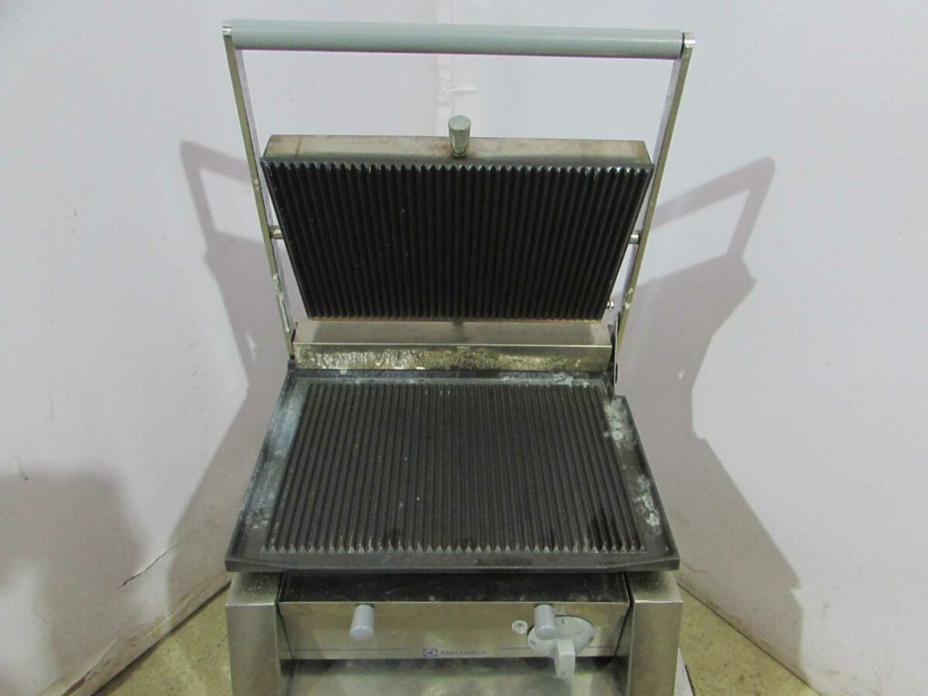 Гриль контактный ELECTROLUX PGRR2 / 602120 (380x435x235 мм, рифленые поверхности , 2,05 кВт,220 В) Регулятор температуры в диапазоне от 0 до 300°С. Тип установки: настольный. Верхняя и нижняя жарочные поверхности имеют рифленую форму, а также покрыты эмалью. Оснащен выдвижным контейнером для сборки жира, четырьмя ножками.
