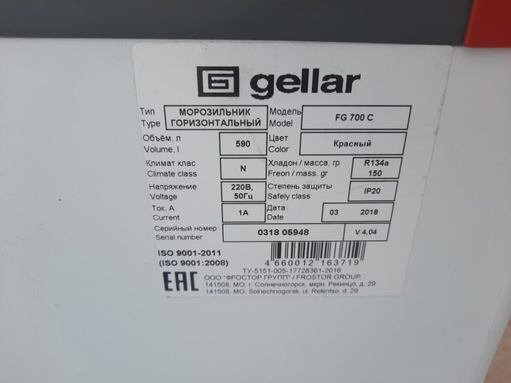 Основные характеристики: Ларь Gellar FG 700 C серый морозильный