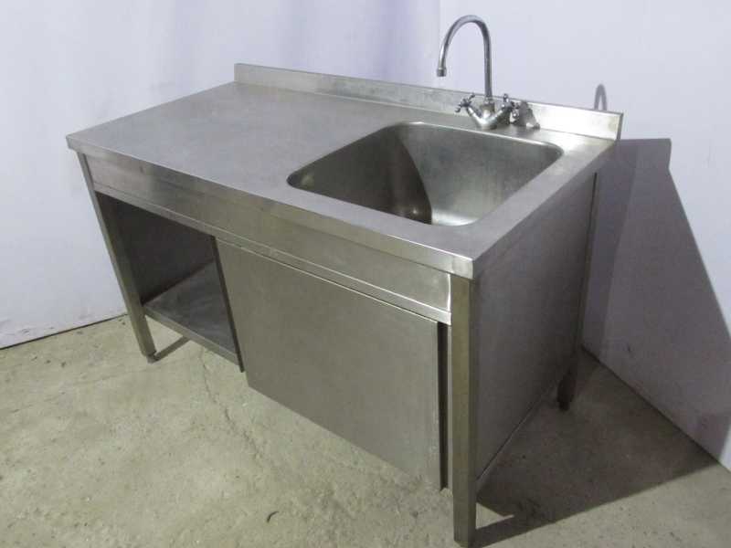 Мойка с рабочей поверхностью, краном.Прочная и надежная конструкция.Внизу имеется полка и раздвижные двери. Грамотно подобранные и установленные на разных этапах пищевого производства, от подготовки сырья до мытья столовой и кухонной посуды, мойки из нержавеющей стали – простое, но необходимое оборудование.