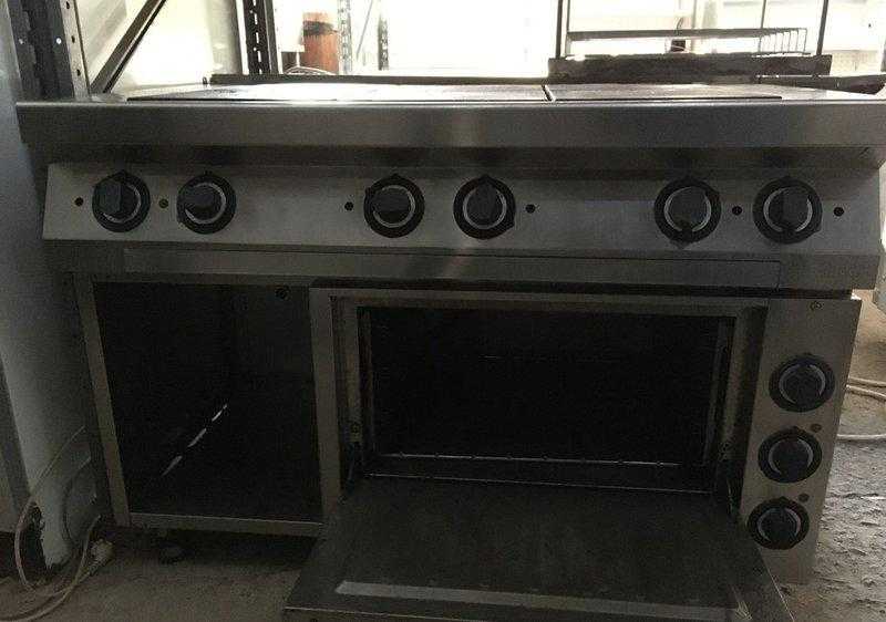 Электрическая плита Kovinastroj (Kogast) ES-Т67/1K-0 предназначена для приготовления различных блюд в наплитной посуде, выпечки мучных и кондитерских изделий, а также хранения инвентаря на предприятиях общественного питания и торговли. Модель оснащена электромеханическим управлением с 7-позиционными пакетными регуляторами степени нагрева для каждой конфорки и 2 регуляторами мощности раздельно для верхних и нижних нагревательных элементов жарочного шкафа. Внутренняя камера, направляющие, внутренняя панель дверцы, ручка и 4 регулируемые ножки выполнены из нержавеющей стали AISI 304