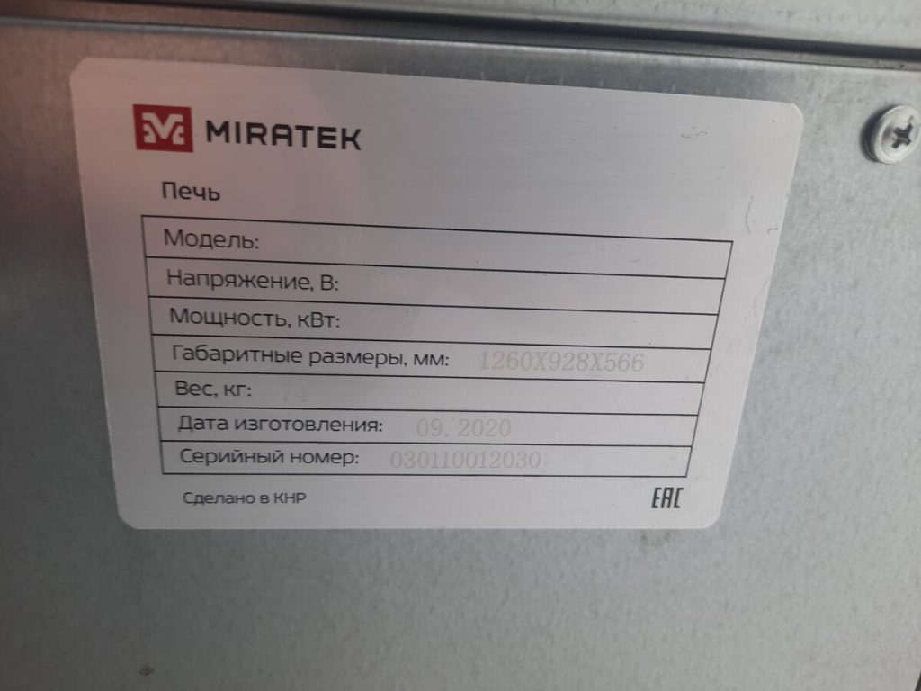 Основные характеристики: Подовая печь miratek bk-12e с пароувлажнением
