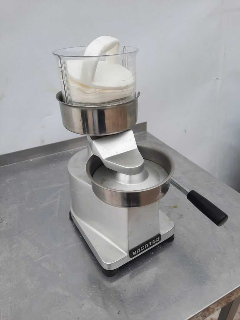 Пресс для гамбургеров Kocateq HF 130 используется на предприятиях общественного питания и торговли для формирования мясных заготовок круглой формы разной толщины из мясного или рыбного фарша. Корпус выполнен из анодированного алюминия, детали. контактирующие с пищевыми продуктами, – из нержавеющей стали.
