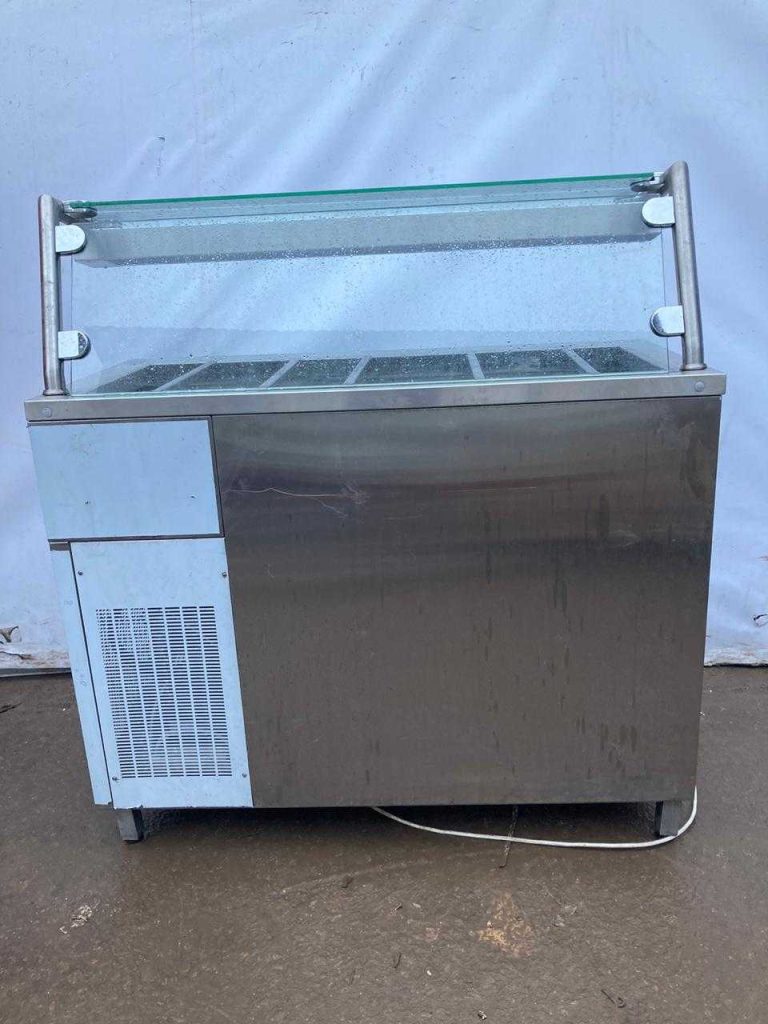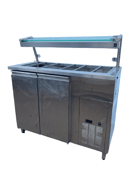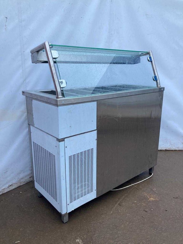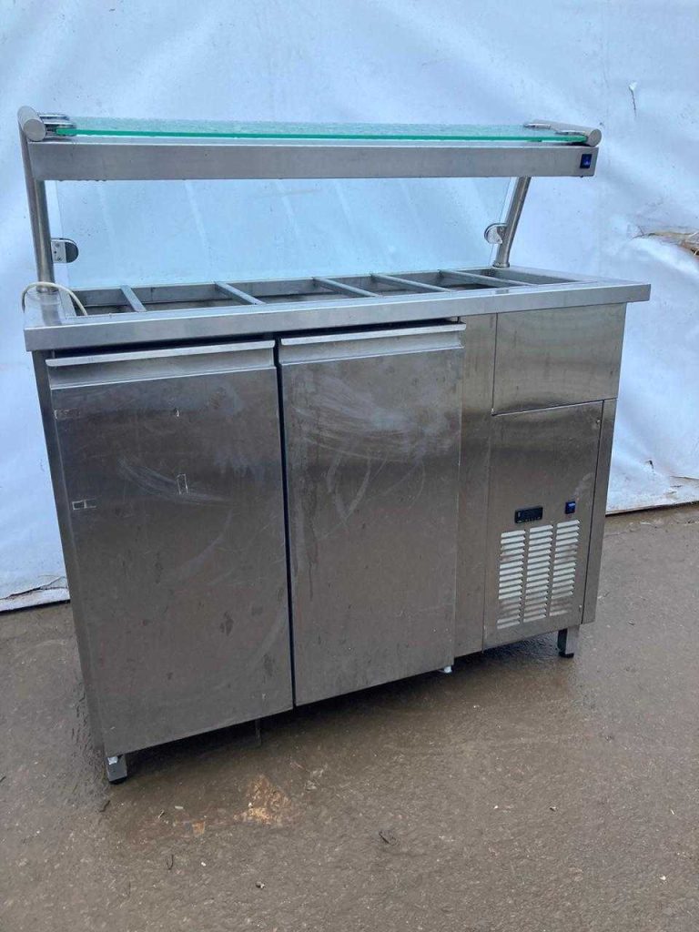 Холодильный прилавок Polair используется в составе линий раздач на предприятиях общественного питания и торговли для демонстрации, кратковременного хранения и охлаждения напитков и различных блюд. Модель оснащена полкой с подсветкой, нейтральным шкафом с дверками и регулируемыми по высоте опорами, что позволяет компенсировать неровности пола. Изделие выполнено из пищевой нержавеющей стали.