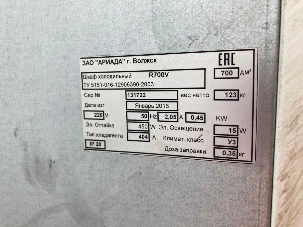 Основные характеристики: Шкаф Carboma R 700 V холодильный