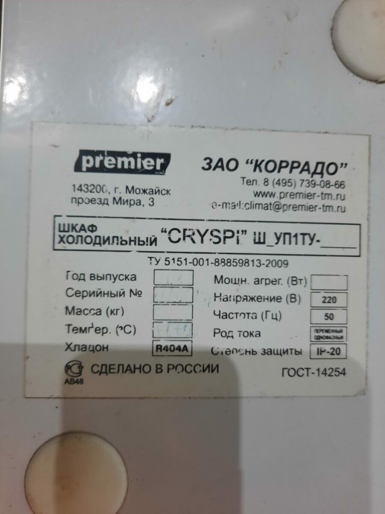 Шкаф Cryspi ШВУП1ТУ-0.8К холодильный