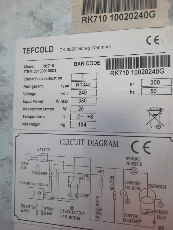 Холодильный шкаф TEFCOLD RK710 предназначен для охлаждения и кратковременного хранения алкогольных и безалкогольных напитков и скоропортящихся продуктов на предприятиях общественного питания и торговли. Корпус и внутренняя обшивка выполнены из нержавеющей стали AISI 304.