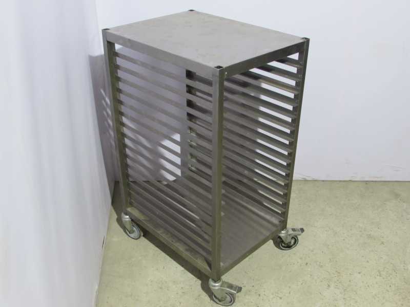 Шпильки тележки хорошо подходят для перевозки пластиковых подносов, гастроемкостей и прочей тары, использующейся на кухнях кафе и прочих предприятий общепита. Передвижение осуществляется за счет 4 малошумных колес. Такие тележки применяются для недолгого хранения емкостей.Состоит из 15 уровней.