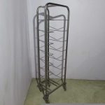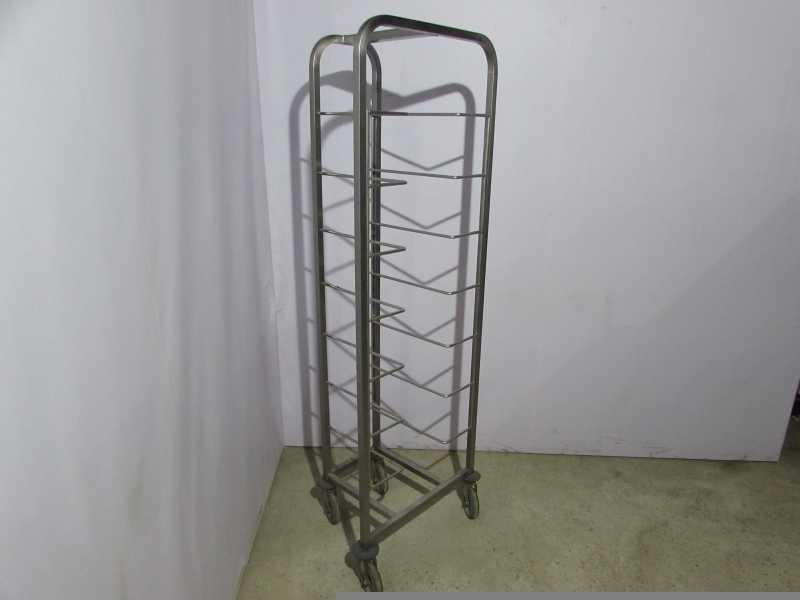 Шпильки тележки очень хорошо подходят для перевозки металлических подносов, гастроемкостей и прочей тары, использующейся в кафе и прочих предприятий общественного питания. Передвижение осуществляется за счет 4 малошумных колес. Такие тележки применяются для недолгого хранения емкостей.Состоит из 8 уровней.
