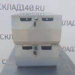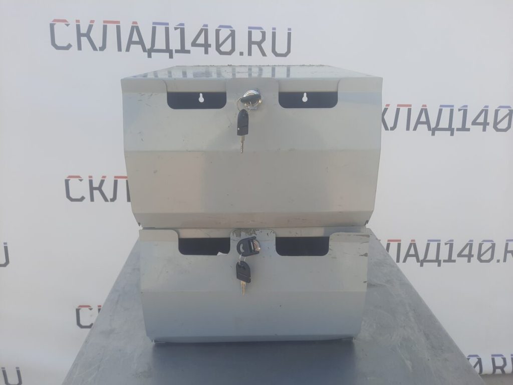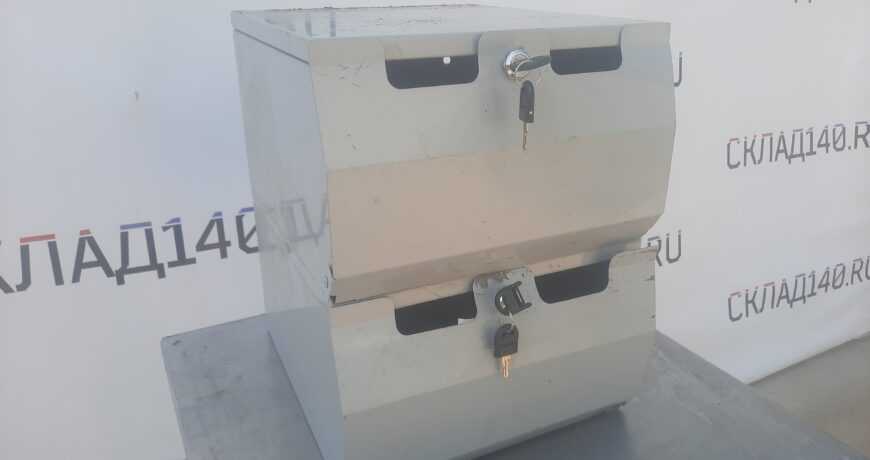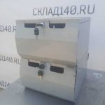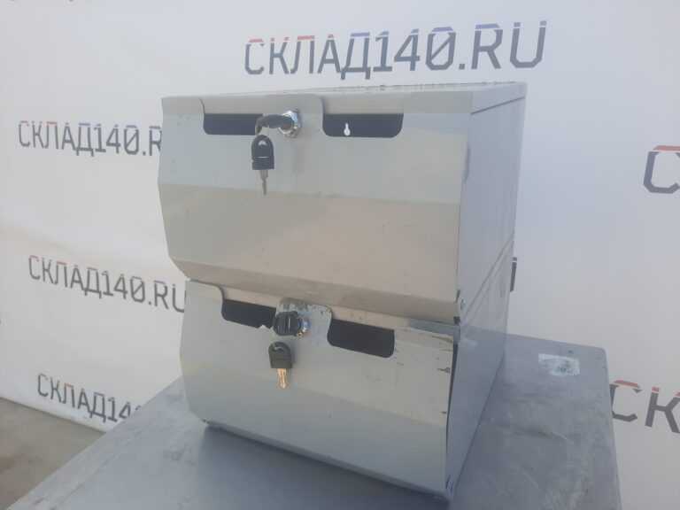 Два уровня. Позволяет хранить упакованный товар и без труда извлекать его поштучно в ходе продажи. Состояние отличное. Запирается на ключ.