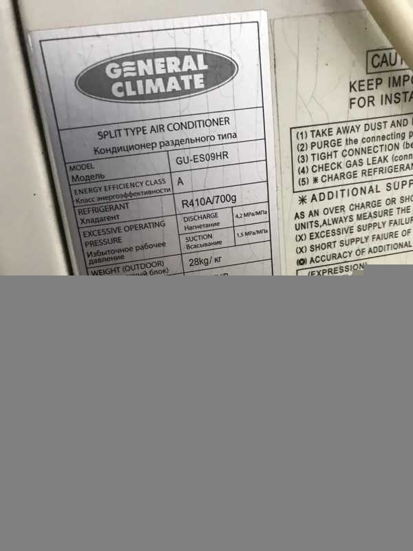 Основные характеристики сплит-системы General Climate GC-ES09HRI/ GU-ES09HR