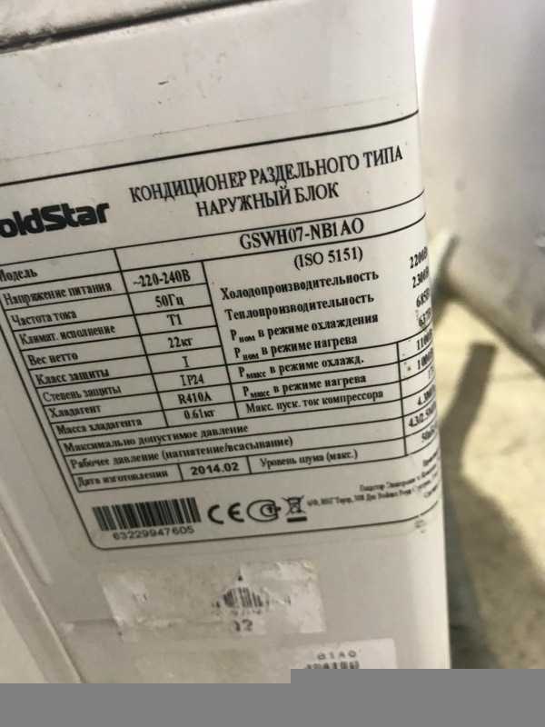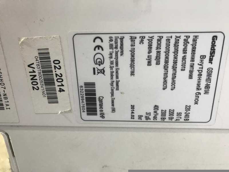 Основные характеристики сплит-системы Goldstar gswh 07