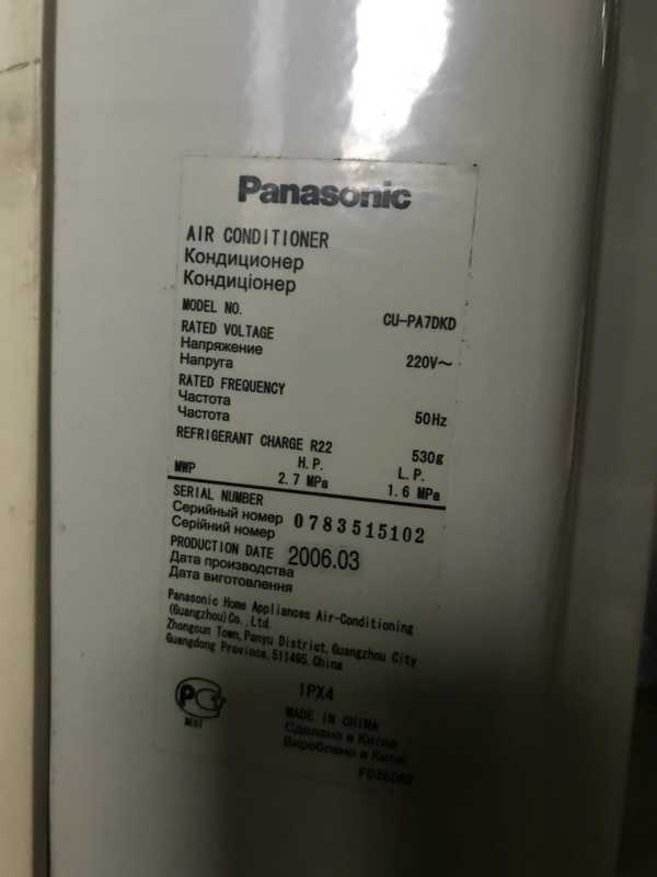 Основные характеристики сплит-системы Panasonic CS-PA7DKD / CU-PA7DKD