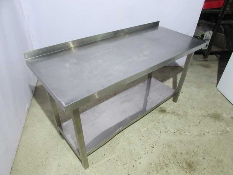 Стол цельный с бортом. Имеет просторную рабочую поверхность, а также нижнюю полку.Столешница и основание изготовлено из высококачественной нержавеющей стали.Очень прочный и устойчивый.Используют такие столы на производствах общественного питания.