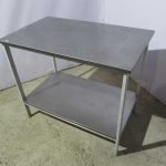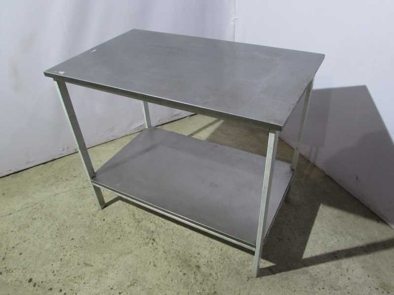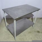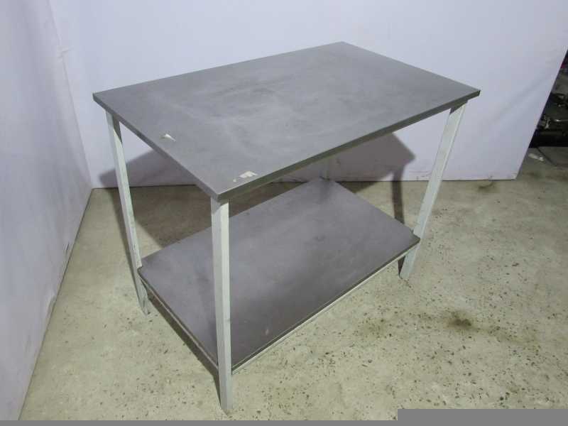 Комбинированный стол.Состоит из верхней столешницы и нижней полки.Материал столешницы как и полки, нержавеющая сталь. Основа стола выполнена из стали, что обеспечивает надежность конструкции.Используются столы на производствах питания, магазинах, кафе.