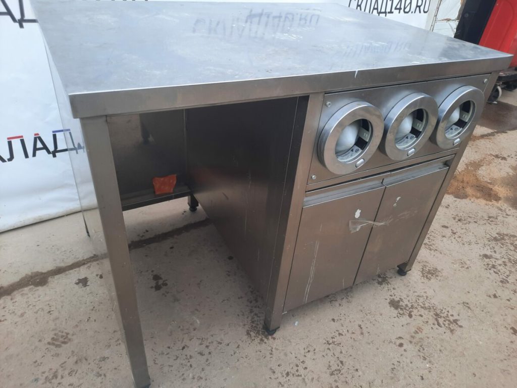 Стол купе используют в разных предприятиях общественного питания, магазинах, комбинатах, пищевых производствах.Выполнены из нержавеющей стали. Оснащен диспенсерами для стаканов.