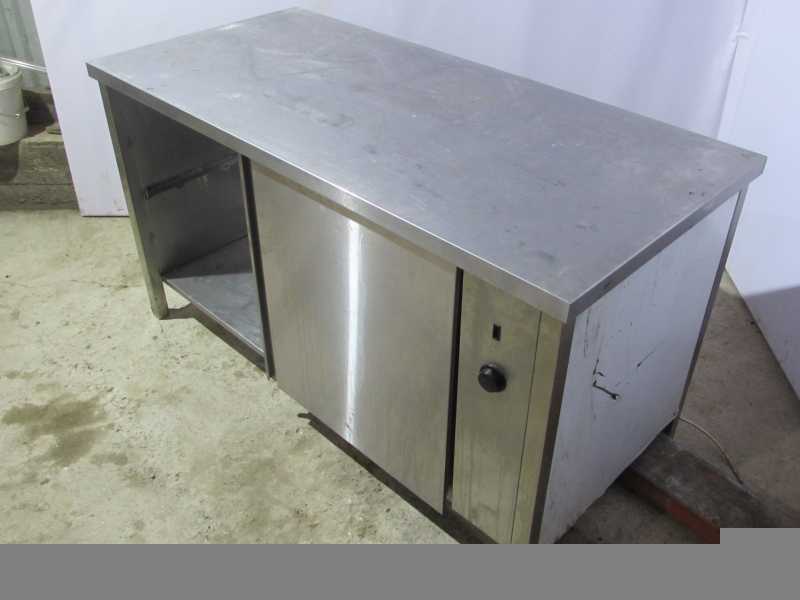 Тепловой стол Kocateq SWMR157 предназначен для подогрева тарелок перед выкладыванием на них продуктов питания и поддержания температуры на предприятиях общественного питания и торговли, в пекарнях и кондитерских. Модель оснащена механическим термостатом для регулировки температуры. Столешница выполнена из нержавеющей стали AISI 304 толщиной 1 мм, усилена вкладкой из ДСП с ламинированием открытой стороны, несущий каркас и нижняя полка – из нержавеющей стали AISI 201, ножки – из квадратной трубы, пятки – из пластика.