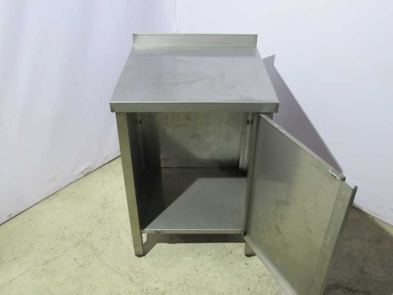 Стол из высококачественной нержавеющей стали, с бортом.Имеет внутреннее пространство и распашную дверь.Ножки регулируются по высоте.Используют такие столы на производствах общественного питания, и подсобных помещениях магазинов.На нашем сайте есть большой выбор различных столов и столешниц.