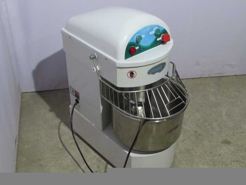 Спиральный тестомес Gastromix HS20B используется на предприятиях общественного питания и торговли, в пекарнях и кондитерских для замеса различных видов теста с влажностью не более 50%, которое подходит для выпечки хлебобулочных или кондитерских изделий. Корпус выполнен из крашенного металла, дежа, защитная решетка и спираль – из нержавеющей стали.
