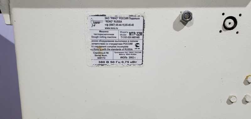Основные характеристики тестораскаточной машины Рино МТР-32