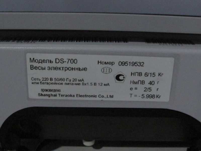 Основные характеристики весов торговых DIGI DS-700