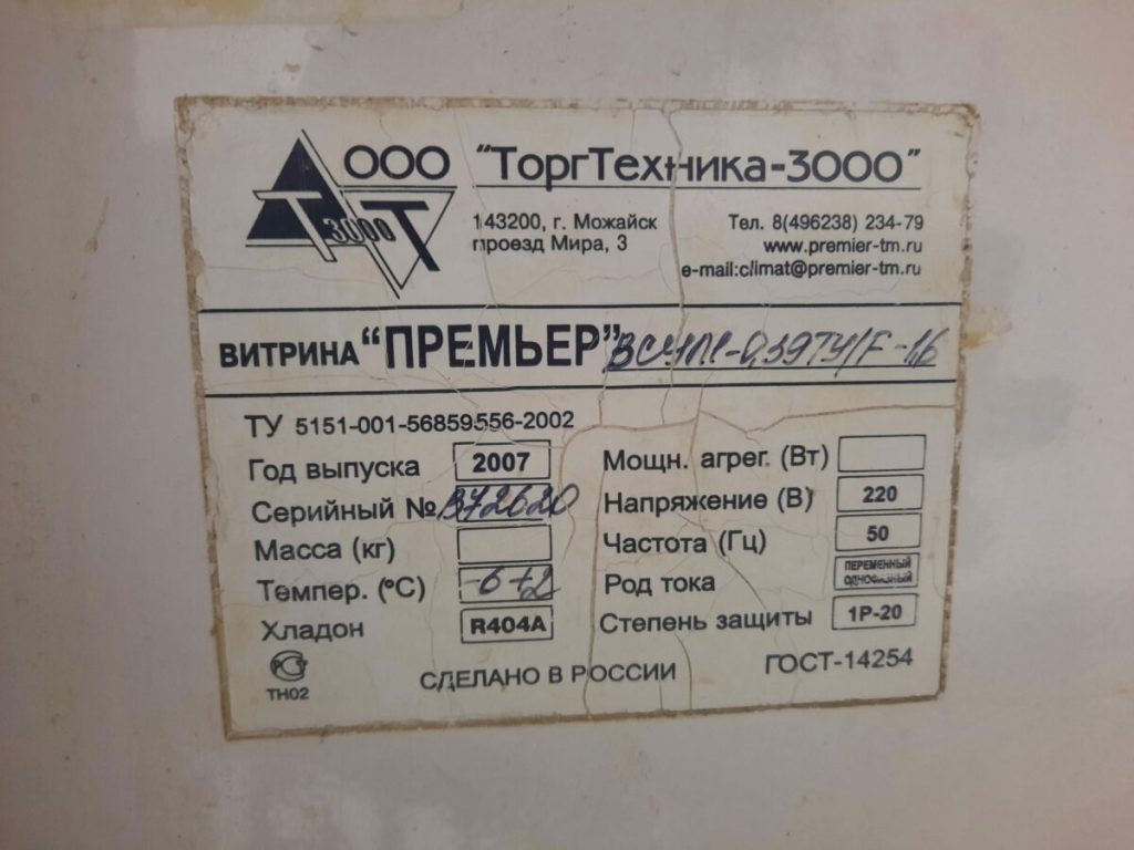 Товар Витрина Торгтехника Премьер ВСУП1-0.39ТУ/F-1.6 универсальная добавлен в корзину
