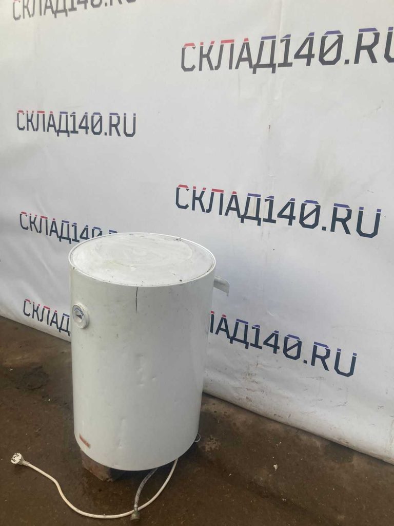 Белый водонагреватель компании Аристон. Имеет накопительный тип.