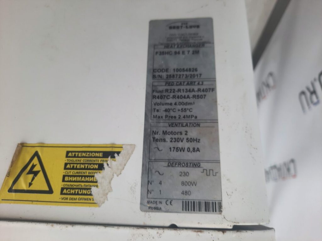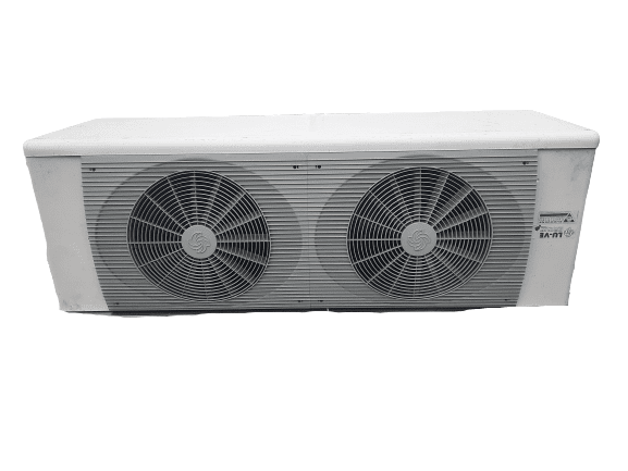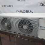 Кубический воздухоохладитель LU-VE F35HC94E7, холодопроизводительность при условиях Tc=-8°C, DT1=8K, R404A составляет 6,05 кВт. Корпус выполнен из оцинкованной стали с нержавеющим напылением Epoxy-Polyester,имеет сертификат “Евровент”. потребляемая мощность 2 х 0,175 кВт. Оттайка- электрическая, напряжение питания 220В/50Гц, потребляемая мощность 3,68 кВт.